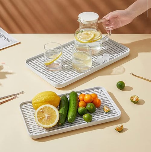Their removable draining racks make them great for drying dishes and produce, but you can use these versatile trays to serve drinks, create a coffee table centerpiece, line your pet’s food bowls, or store sink-side essentials like soap and scrubbers. According to reviewers, the material is “lightweight yet sturdy,” the removable rack is “easy to clean,” and the “low profile” looks sleek and modern.