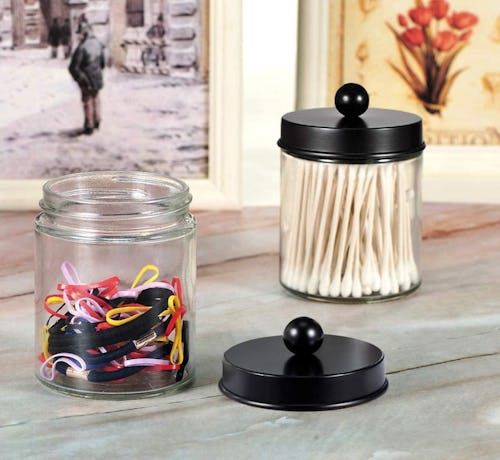 Hair ties, cotton swabs, Epsom salt, flossers, rubber bands, paper clips, dishwasher pods — whatever essentials you need to store, these apothecary jars turn them into chic, rustic decor. The glass jars hold up to 8 ounces, the round-knob lids are made from stainless steel in your choice of six finishes, and the set includes waterproof chalkboard labels that you can mark, erase, and reuse.