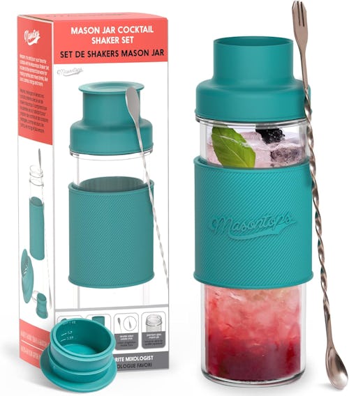 Master your cocktail game with this shaker set, which includes a glass jar with a rubber sleeve, a strainer lid, a shot glass cap with measurements, and a double-ended stir stick. “I bought this to replace a traditional stainless steel shaker,” one reviewer said, and it’s “so much better for many reasons: you can see the contents; high quality; doesn't leak when shaking; top is easy to remove; easy to clean.”