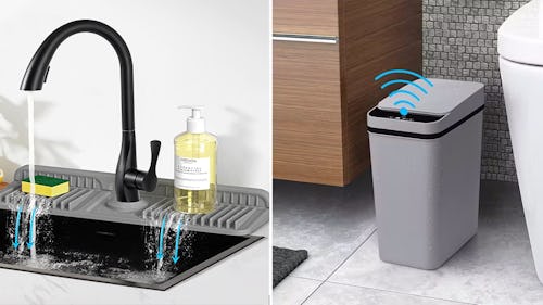 According to one reviewer who has a “much more expensive Simple Human garbage can” in the kitchen, this budget-friendly touchless trash can is nearly as good for a fraction of the price. Powered by batteries, the automatic lid keeps unwanted odors in and water out, but opens with a kick or a wave. Its slim design is also great for tight spots next to furniture or the toilet.