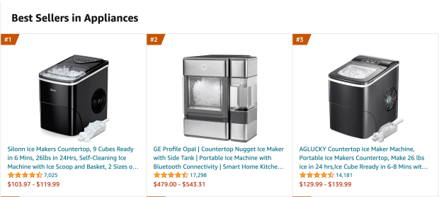 Amazon's Best Sellers, or a ranking of the most popular products sold on the e-commerce platforms that is updated hourly, have been heat-related in a range of different categories this week — in the Appliances category, the five most-bought products as of Tuesday afternoon were some version of the ice maker while the sixth spot was taken over by the cleaning material necessary to keep the machine working.