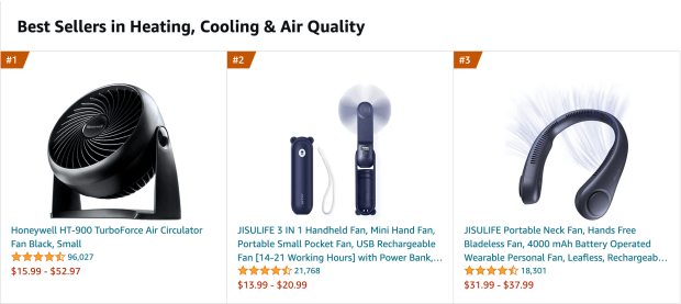 Unsurprisingly, fans of all kinds also dominated the Heating, Cooling and Air Quality category — room fans, hand fans and even a popular neck fan by Chinese tech company Jisulife.