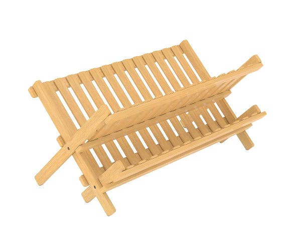 When you need a place to let dishes drip dry, this folding bamboo drying rack will be ready. Keep it stored for the occasional overflow situation or always out on the counter to manage a continuous stream of washed glasses and mugs. It looks good, holds lots of dishes, and stores flat.