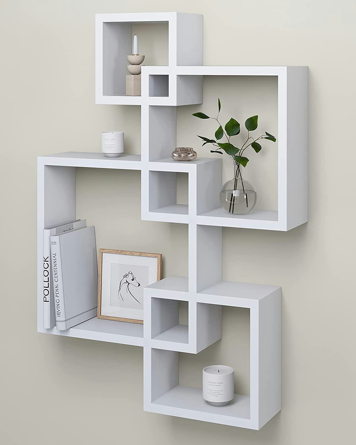 Using unique floating wall shelves to create storage that looks good