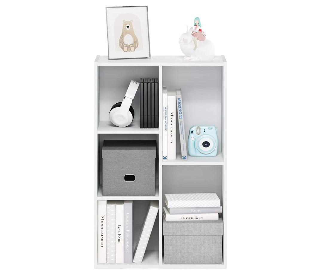 Set this versatile little bookcase at your entry, in the closet, or in your home office to create handy storage for small items you want to keep within reach. It comes in great colors so you can design a modern and fun look that suits whatever room you are putting it in. And you can add more shelves as the need arises. The cubbies hold everything from storage baskets to books to backpacks.