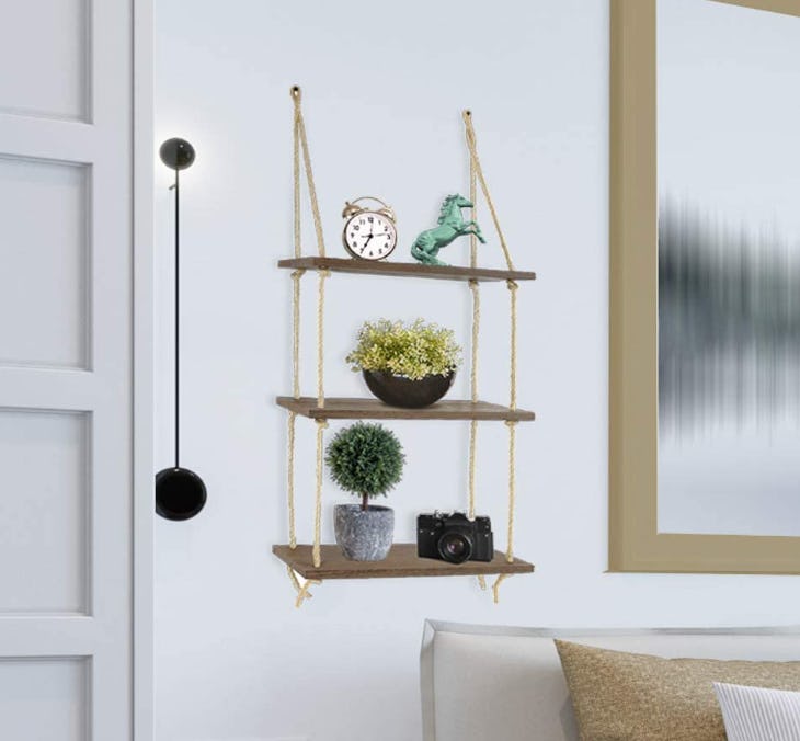 It’s so easy to turn a bit of a blank wall or even a window into a place to set plants, or to show off a collection of toys or cameras with this three-tier hanging shelf. You can hang it from a single hook or from two hooks because the rope makes it super versatile and easy to level. It also gives it a rustic look that goes with lots of interiors.
