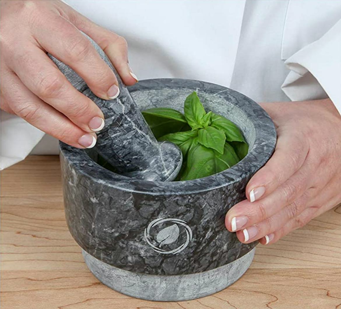 A big mortar and pestle are great for whipping up a quick guacamole, but a small set is better for grinding seeds, coffee, or even pills. But who has room for both? This reversible mortar and pestle set is both in one body. It’s a big, 2.1 cup capacity mortar, but flip it over and you’ll find a small grinding mortar in the bottom. Even the pestle flips around and can be used on both ends.
