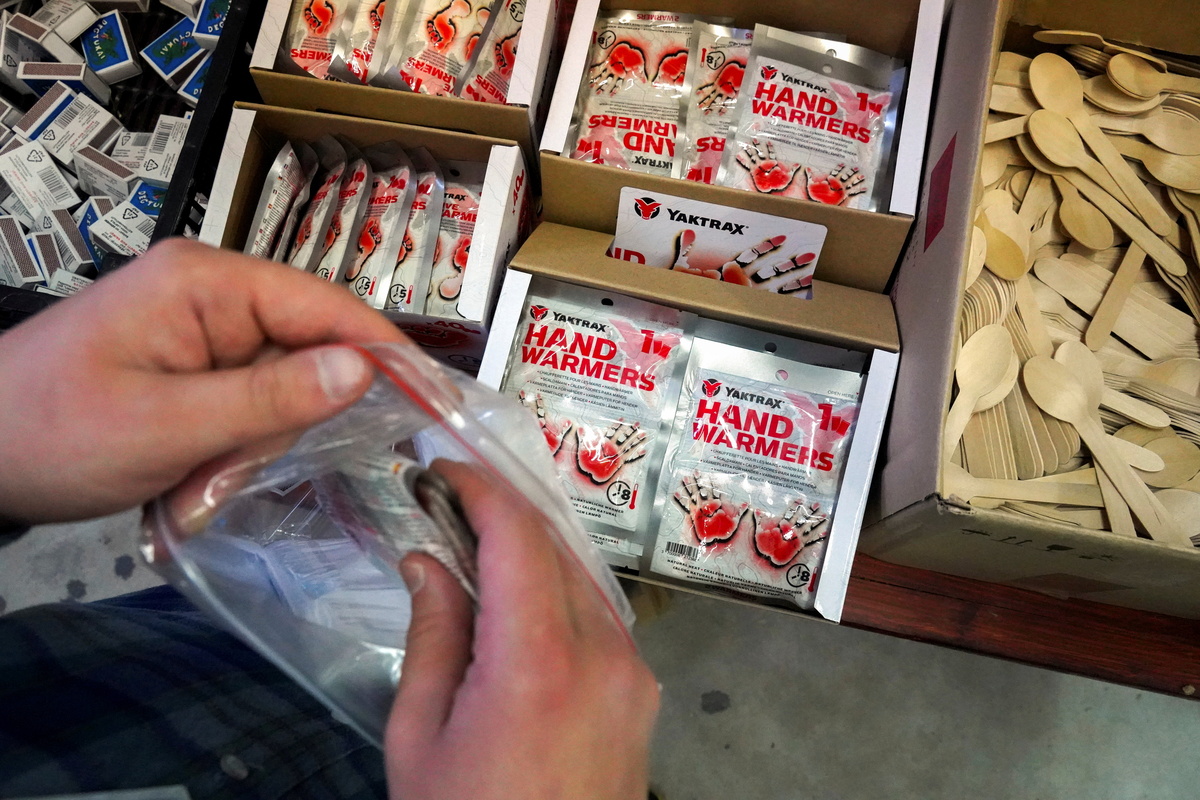 A group of five volunteers in a garage near the Lithuanian capital are packing matches, hand and feet warmers, a cup and a spoon into plastic bags to be handed out to migrants their country will push back out into Belarus.