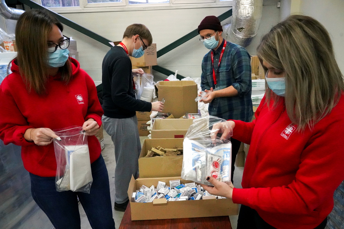 The food is provided by organizations such as Red Cross, the International Organization for Migration and Caritas and packed in cooperation with Lithuania's border guards, who provided the garage and give the packs to guards patrolling the frontier.