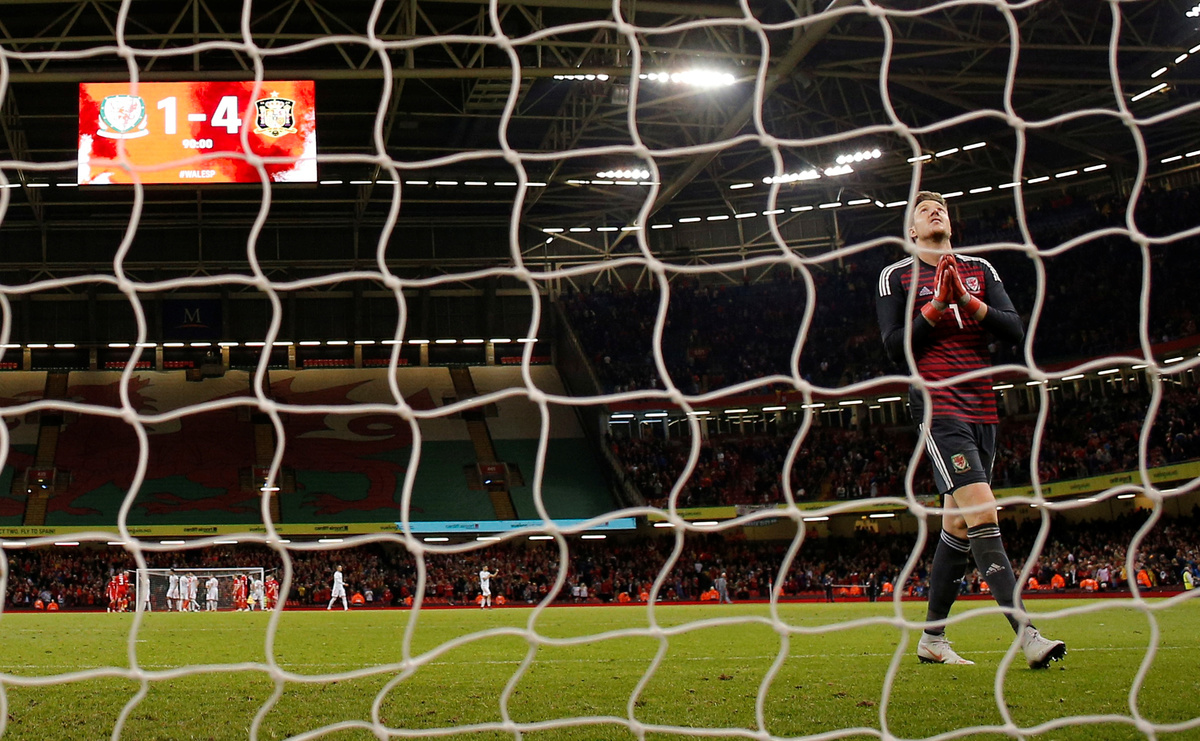 Soccer Football - International Friendly - Wales v Spain - Principality Stadium, Cardiff, Britain - October 11, 2018 Wales' Wayne Hennessey looks on as Spain's Marc Bartra scores their fourth goal Action Images via Reuters/Andrew CouldridgeSoccer Football - International Friendly - Wales v Spain - Principality Stadium, Cardiff, Britain - October 11, 2018 Wales manager Ryan Giggs and Ben Davies after the match Action Images via Reuters/Andrew CouldridgeSoccer Football - International Friendly - Wales v Spain - Principality Stadium, Cardiff, Britain - October 11, 2018 Wales' Aaron Ramsey looks dejected after the match Action Images via Reuters/Andrew CouldridgeSoccer Football - International Friendly - Wales v Spain - Principality Stadium, Cardiff, Britain - October 11, 2018 Wales' Sam Vokes celebrates scoring their first goal Action Images via Reuters/Andrew CouldridgeSoccer Football - International Friendly - Wales v Spain - Principality Stadium, Cardiff, Britain - October 11, 2018 Spain's Paco Alcacer scores their third goal Action Images via Reuters/Andrew CouldridgeSoccer Football - International Friendly - Wales v Spain - Principality Stadium, Cardiff, Britain - October 11, 2018 Wales manager Ryan Giggs during the match Action Images via Reuters/Andrew Couldridge