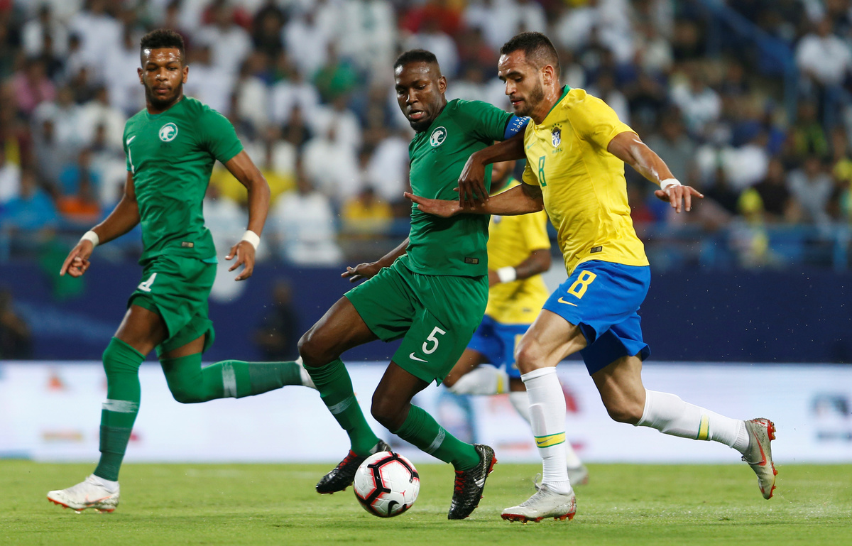 Brazil had scored 16 goals in their four previous wins against the Saudis but the home side matched the visitors, particularly in midfield, for most of the game.
