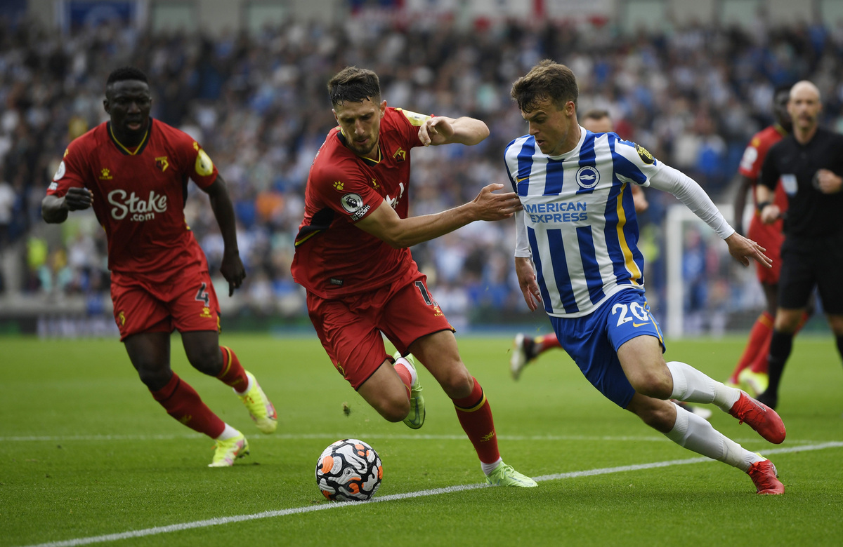 Brighton's second was a gift as Yves Bissouma pounced on a sloppy pass by Watford defender William Ekong and touched the ball through to Maupay who beat Daniel Bachmann with ease.