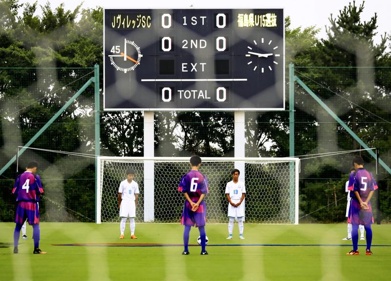 The match between selected junior high soccer players from Fukushima Prefecture and the local club team kicked off at 2:46 p.m., the exact time the earthquake occurred.