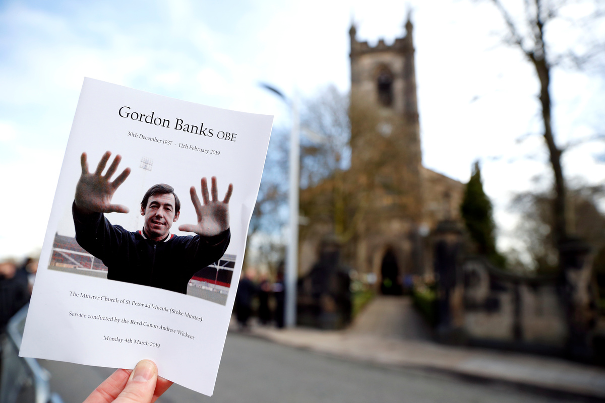 STOKE-ON-TRENT, England (Reuters) - Thousands of fans joined luminaries of English football for a final farewell on Monday to Gordon Banks, a steelworker's son who became one of the world's greatest goalkeepers and will forever be remembered for a miraculous save against Pele.