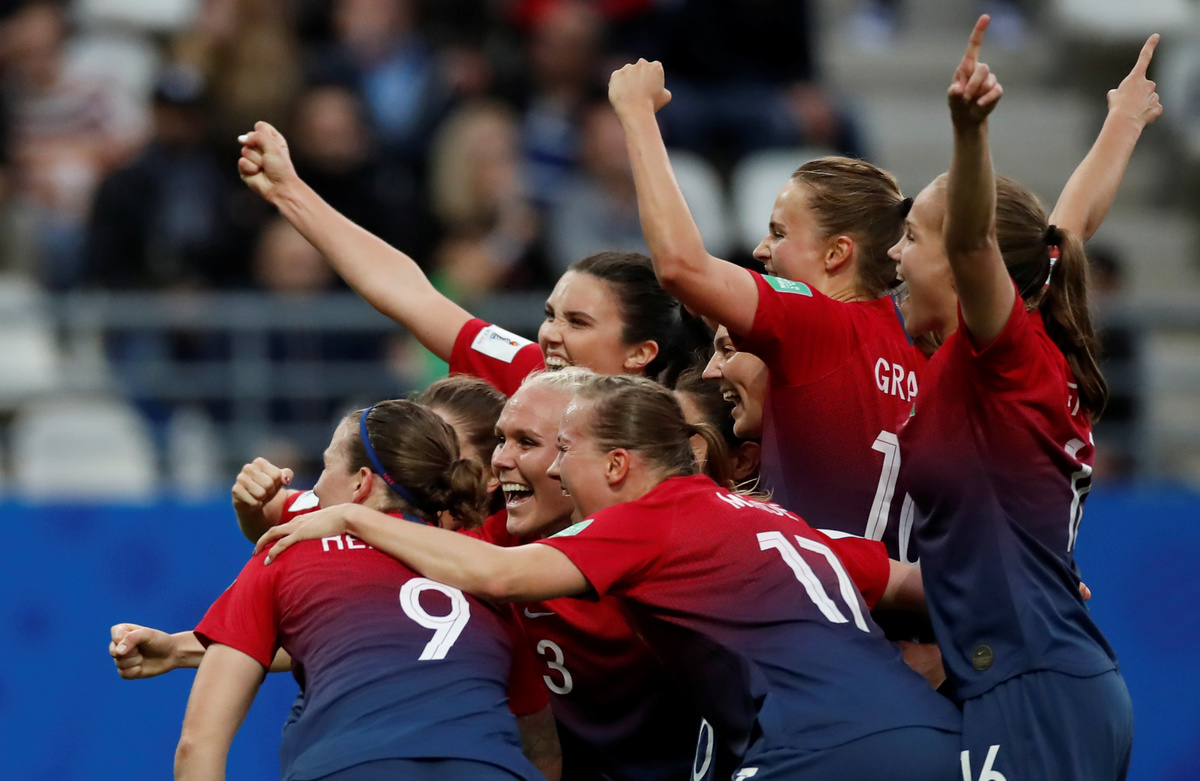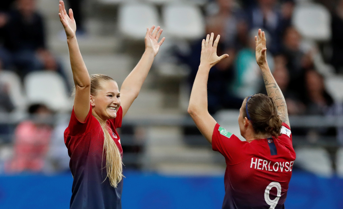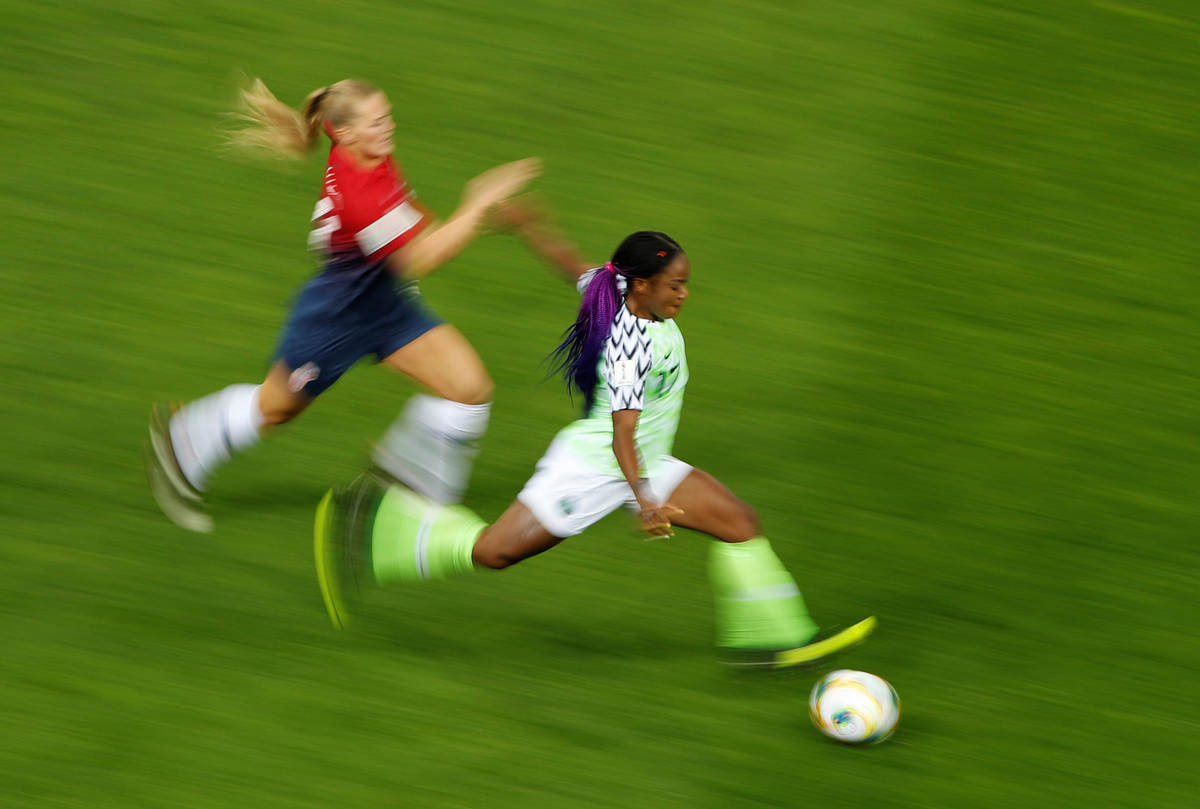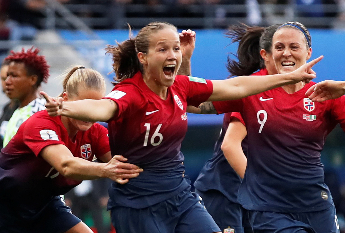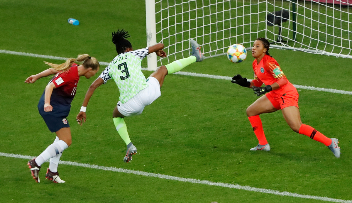 Soccer Football - Women's World Cup - Group A - Norway v Nigeria - Stade Auguste-Delaune, Reims, France - June 8, 2019 Nigeria's Rita Chikwelu in action with Norway's Guro Reiten REUTERS/Gonzalo FuentesSoccer Football - Women's World Cup - Group A - Norway v Nigeria - Stade Auguste-Delaune, Reims, France - June 8, 2019 Norway's Ingrid Syrstad Engen in action with Nigeria's Rita Chikwelu REUTERS/Gonzalo FuentesSoccer Football - Women's World Cup - Group A - Norway v Nigeria - Stade Auguste-Delaune, Reims, France - June 8, 2019 Nigeria's Faith Michael reacts REUTERS/Christian HartmannSoccer Football - Women's World Cup - Group A - Norway v Nigeria - Stade Auguste-Delaune, Reims, France - June 8, 2019 Nigeria's Francisca Ordega in action REUTERS/Gonzalo FuentesSoccer Football - Women's World Cup - Group A - Norway v Nigeria - Stade Auguste-Delaune, Reims, France - June 8, 2019 Norway's Lisa-Marie Utland scores their second goal REUTERS/Gonzalo FuentesSoccer Football - Women's World Cup - Group A - Norway v Nigeria - Stade Auguste-Delaune, Reims, France - June 8, 2019 Norway's Lisa-Marie Utland celebrates scoring their second goal with Isabell Herlovsen REUTERS/Christian HartmannSoccer Football - Women's World Cup - Group A - Norway v Nigeria - Stade Auguste-Delaune, Reims, France - June 8, 2019 Nigeria's Osinachi Ohale scores an own goal and Norway's third REUTERS/Gonzalo FuentesSoccer Football - Women's World Cup - Group A - Norway v Nigeria - Stade Auguste-Delaune, Reims, France - June 8, 2019 Nigeria's Osinachi Ohale looks dejected after scoring an own goal for Norway's third as Norway's Lisa-Marie Utland celebrates REUTERS/Christian HartmannSoccer Football - Women's World Cup - Group A - Norway v Nigeria - Stade Auguste-Delaune, Reims, France - June 8, 2019 Norway's Lisa-Marie Utland celebrates scoring their second goal with team mates REUTERS/Christian Hartmann