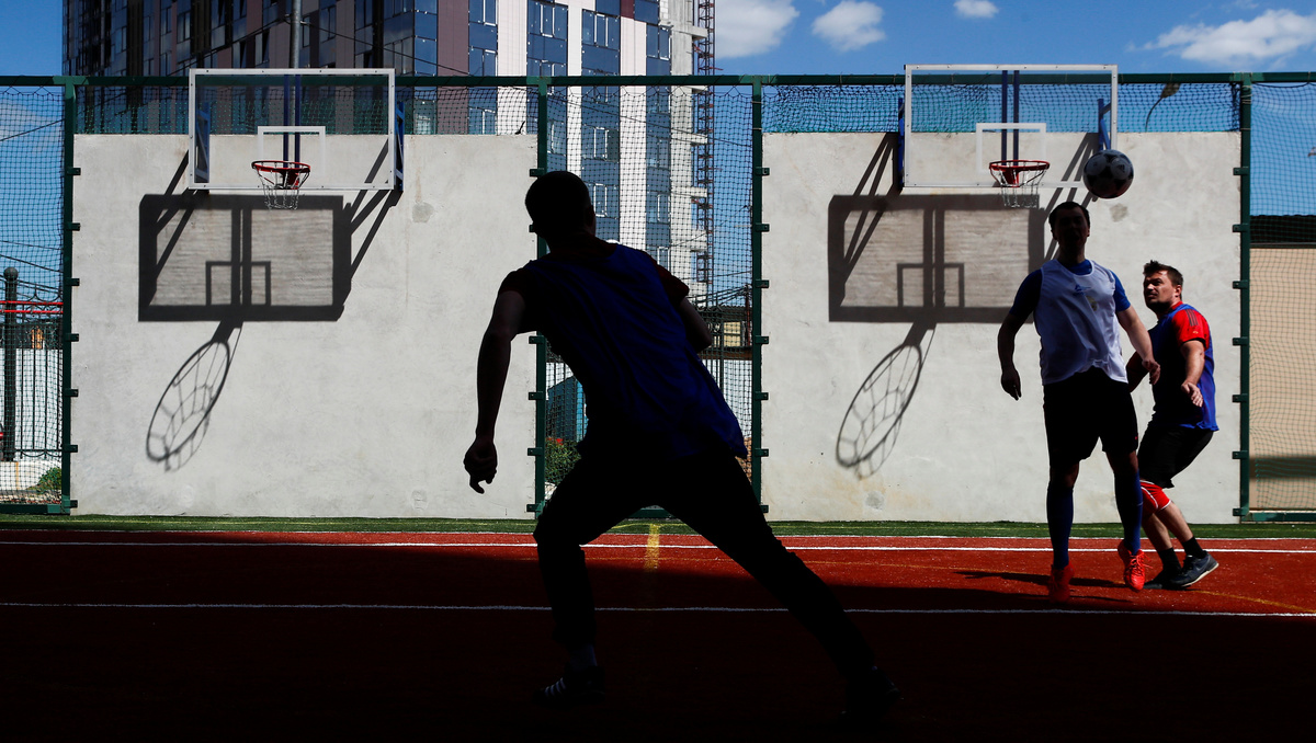 The 34-year-old window cleaner plays for FC Maxima, an amateur soccer team set up specially to help immigrants settle in the northern Russian city. He says the regular sport and close camaraderie keep him going.