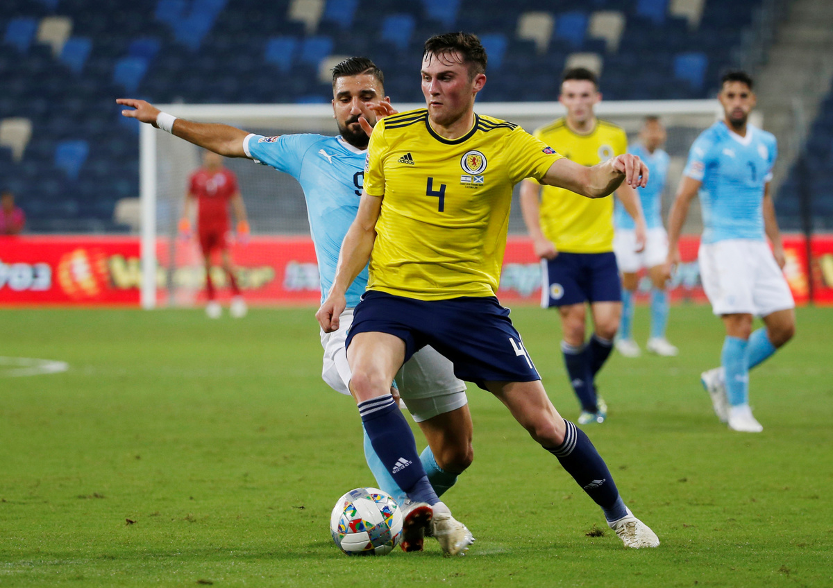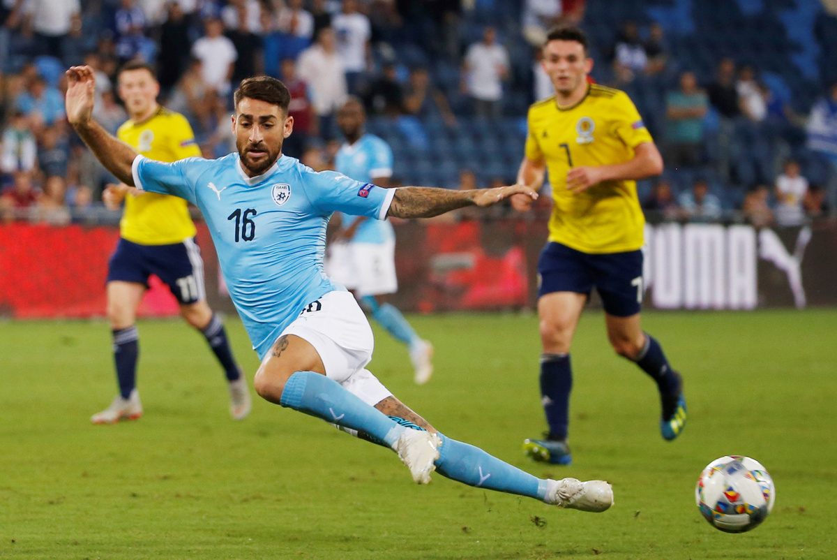 HAIFA (Reuters) - Israel fought back to beat Scotland 2-1 thanks to a late own goal from Kieran Tierney as the visitors finished with 10 men in an eventful Nations League game on Thursday.
