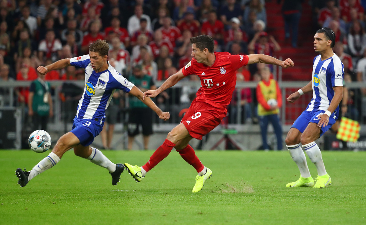MUNICH, Germany (Reuters) - Bayern Munich's Robert Lewandowski scored twice to save the champions' blushes as they had to come from behind to rescue a 2-2 draw against Hertha Berlin in the Bundesliga season opener on Friday.