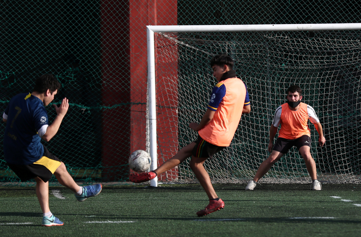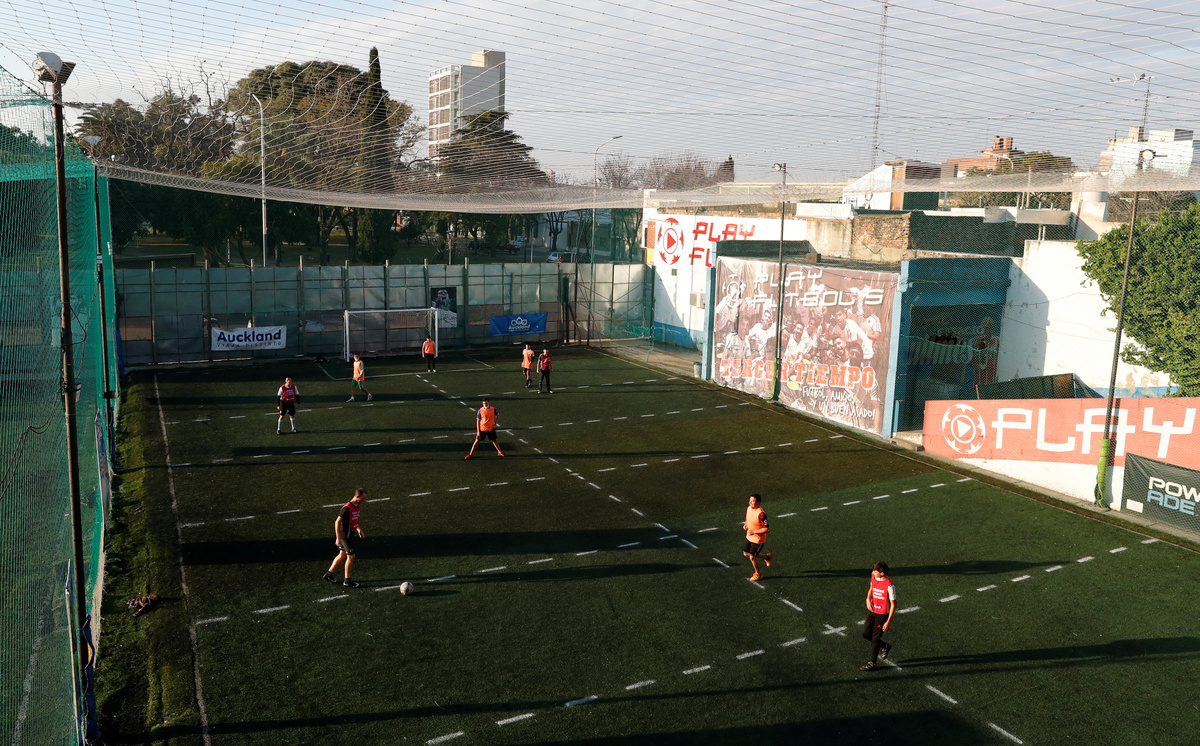 "It is the first time I have kicked in several months," said Gustavo Santapaola, who took part in a match at the Play Fútbol ground. "I honestly tell you, I am excited."