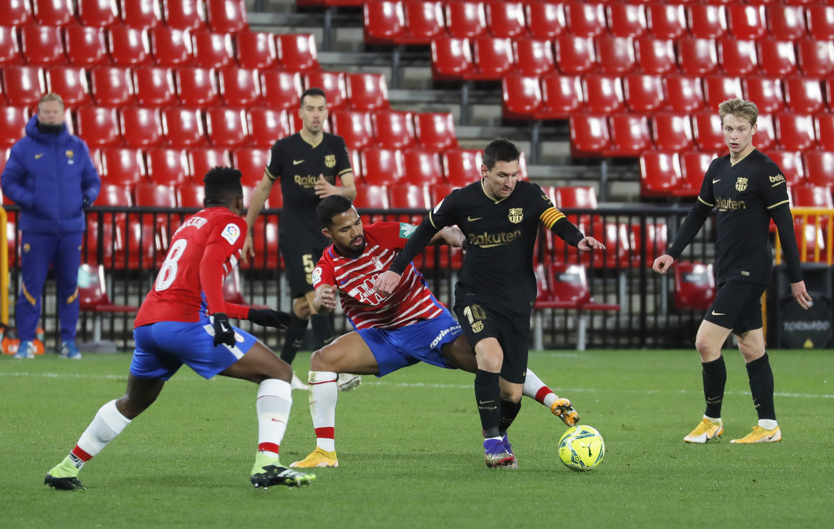 French forward Griezmann scored a classy second goal after halftime while things got worse for Granada when Jesus Vallejo was sent off in the 78th minute for clattering into Barca substitute Martin Braithwaite.