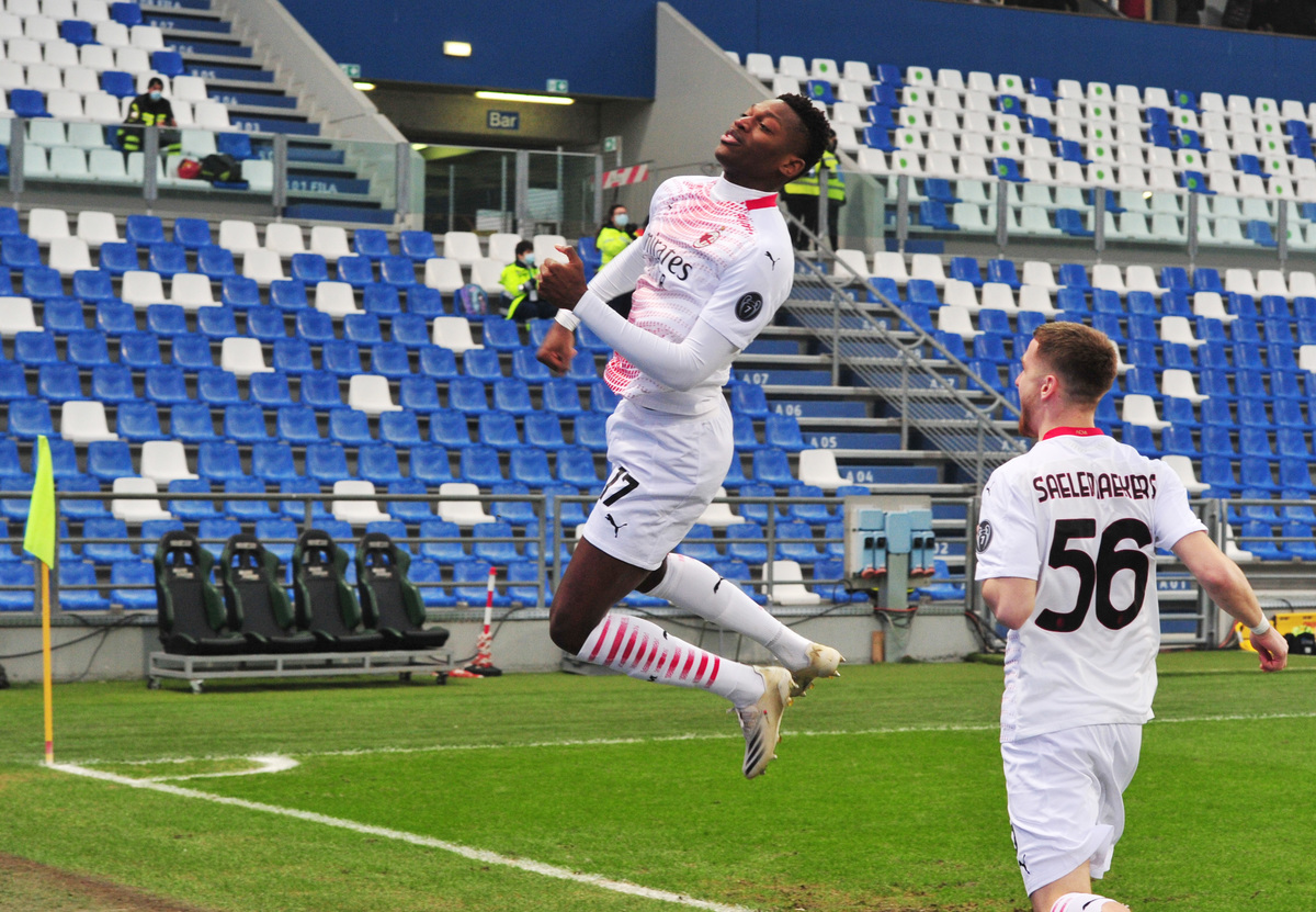 Soccer Football - Serie A - U.S. Sassuolo v AC Milan - Mapei Stadium - Citta del Tricolore, Reggio Emilia, Italy - December 20, 2020 AC Milan's Rafael Leao celebrates scoring their first goal REUTERS/Jennifer Lorenzini