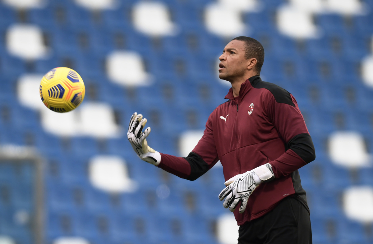 Soccer Football - Serie A - U.S. Sassuolo v AC Milan - Mapei Stadium - Citta del Tricolore, Reggio Emilia, Italy - December 20, 2020 AC Milan's Brahim Diaz in action with Sassuolo's Mehdi Bourabia REUTERS/Jennifer LorenziniSoccer Football - Serie A - U.S. Sassuolo v AC Milan - Mapei Stadium - Citta del Tricolore, Reggio Emilia, Italy - December 20, 2020 AC Milan goalkeeper coach Nelson Dida during the warm up before the match REUTERS/Jennifer LorenziniSoccer Football - Serie A - U.S. Sassuolo v AC Milan - Mapei Stadium - Citta del Tricolore, Reggio Emilia, Italy - December 20, 2020 AC Milan's Rafael Leao celebrates scoring their first goal with teammates REUTERS/Jennifer Lorenzini