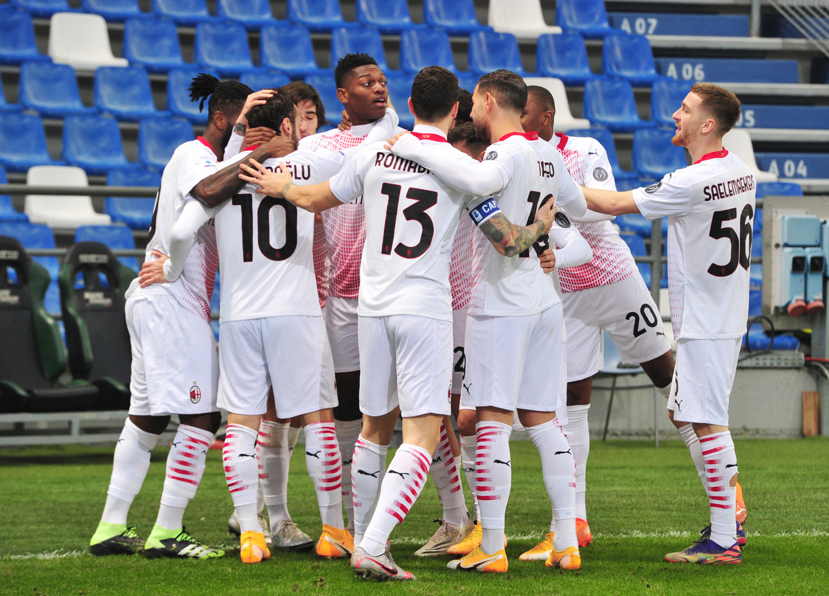 Hakan Calhanoglu collected the ball straight from the kickoff and opened up the Sassuolo defence with an incisive pass to Leao, who beat goalkeeper Andrea Consigli with an angled drive.