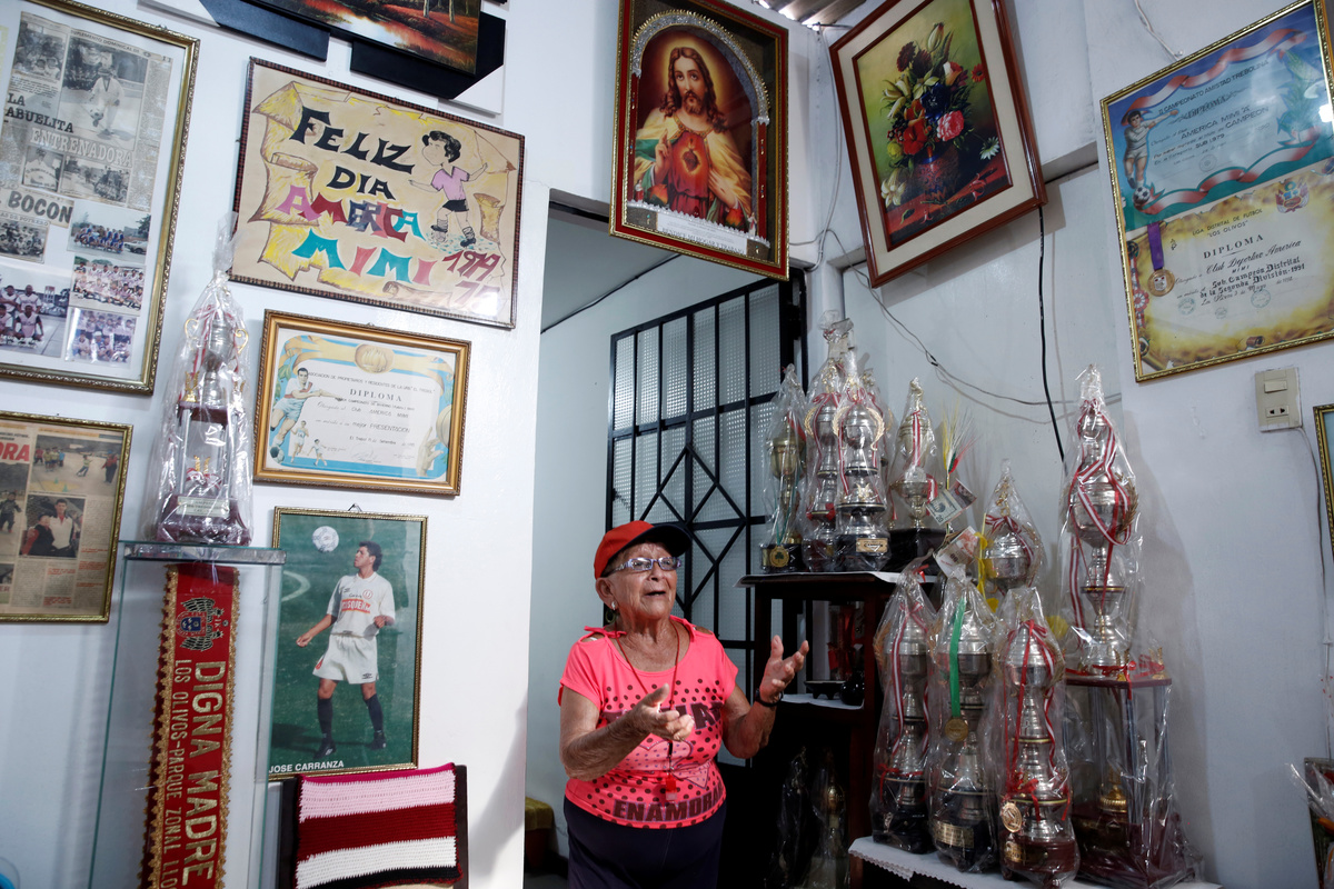REUTERS/Janine CostaMaria Angelica Ramos shows trophies at her home in Los Olivos, Lima. Ramos, known by her players as "the Old Lady", has been a coach for almost half a century, most of them at Lima's America Mimi Sporting Club.