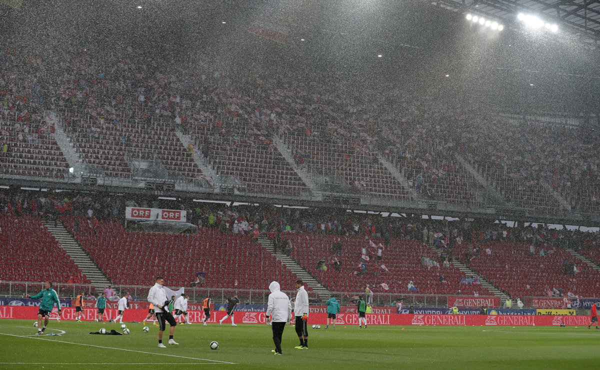 KLAGENFURT, Austria (Reuters) - Torrential rain delayed the kickoff of Germany's friendly away to Austria by one hour and 40 minutes on Saturday.