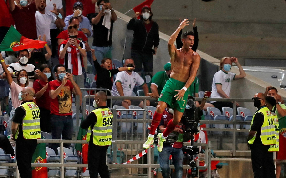 Cristiano Ronaldo became the all-time leading scorer in men's international football when he headed two last-gasp goals to give Portugal a 2-1 comeback victory over Ireland in Group A of World Cup Qualifying on Wednesday.