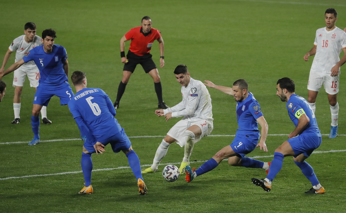 Spain struggled to create clear-cut chances as they were held to a frustrating 1-1 draw by Greece on Thursday in a disappointing start to their World Cup qualifying campaign.