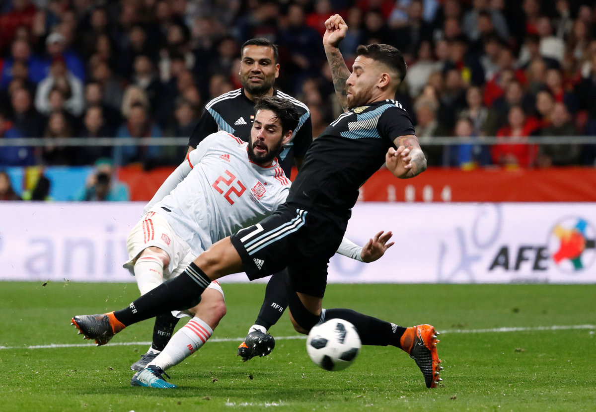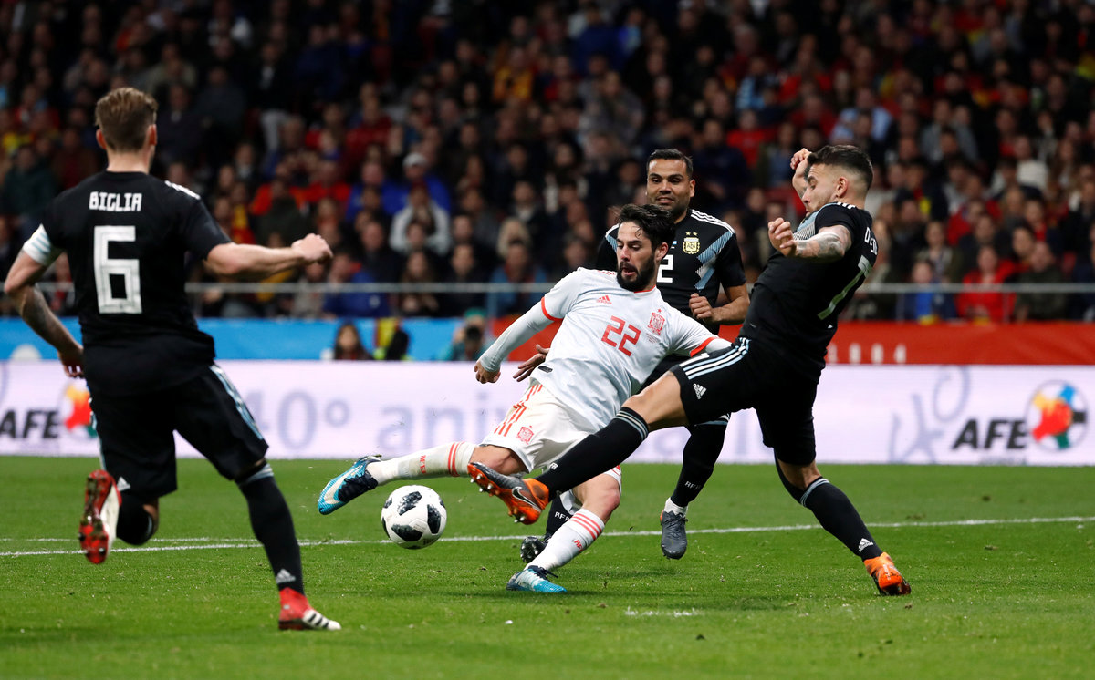 MADRID (Reuters) - Spain sent out a warning to their World Cup rivals as Isco grabbed a hat-trick in a 6-1 thrashing of Argentina, who were missing the injured Lionel Messi, in a friendly on Tuesday.