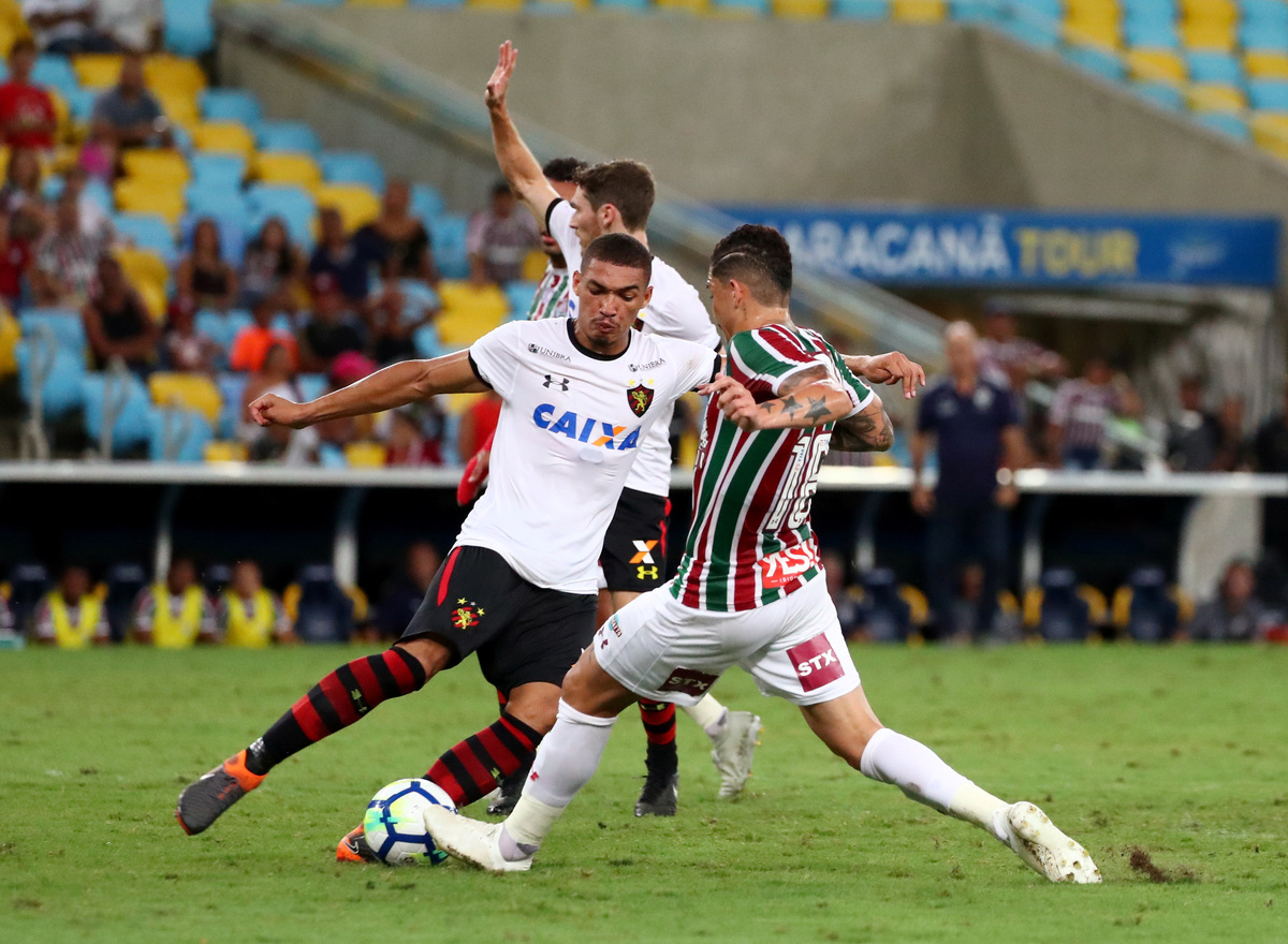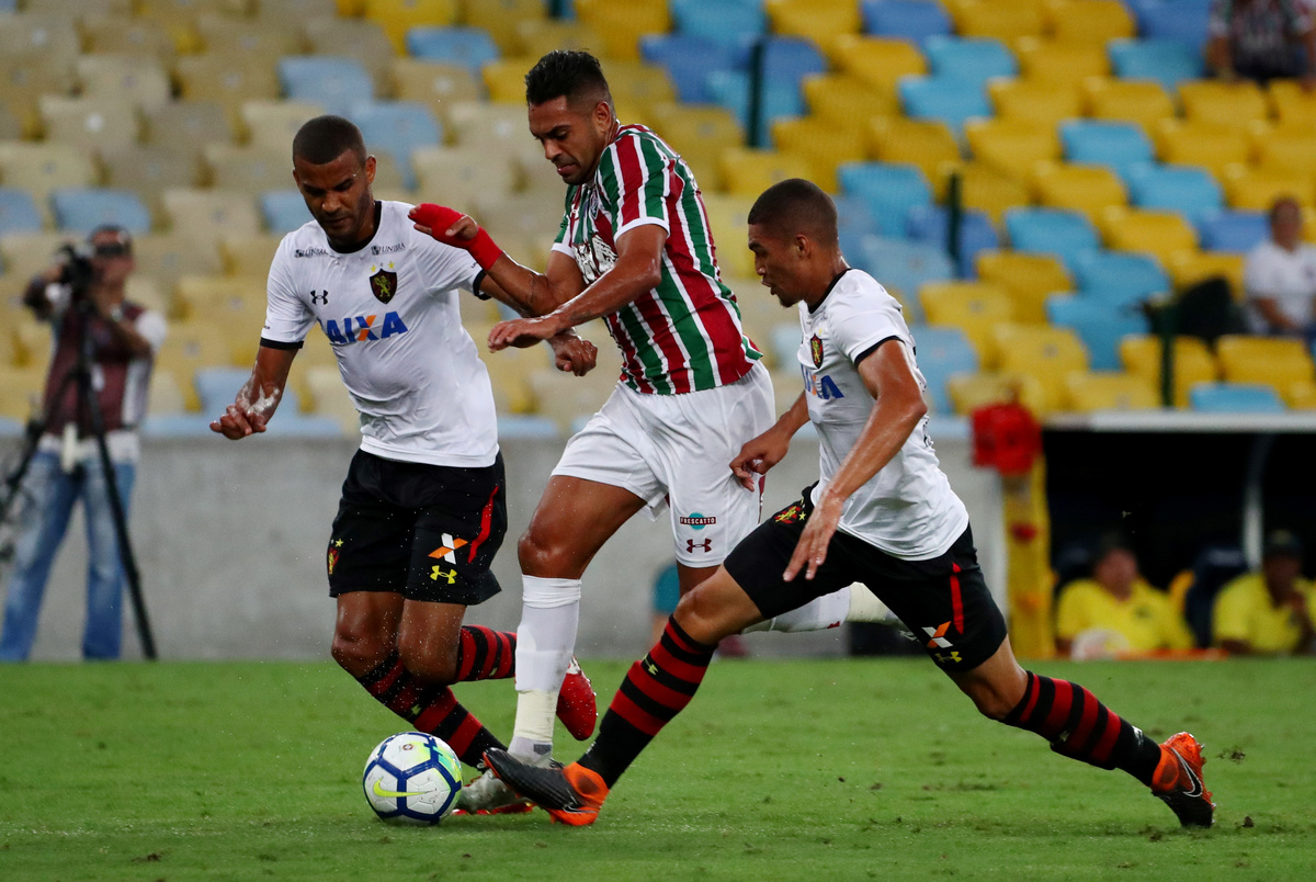 Soccer Football - Brasileiro Championship - Fluminense v Sport Recife - Maracana Stadium, Rio de Janeiro, Brazil - November 11, 2018 Fluminense's Marcos Junior in action with Sport Recife's Raul Prata REUTERS/Pilar OlivaresSoccer Football - Brasileiro Championship - Fluminense v Sport Recife - Maracana Stadium, Rio de Janeiro, Brazil - November 11, 2018 Fluminense's Luciano in action with Sport Recife's Adryelson REUTERS/Pilar OlivaresSoccer Football - Brasileiro Championship - Fluminense v Sport Recife - Maracana Stadium, Rio de Janeiro, Brazil - November 11, 2018 Fluminense's Junior Dutra in action with Sport Recife's Ernando and Adryelson REUTERS/Pilar Olivares