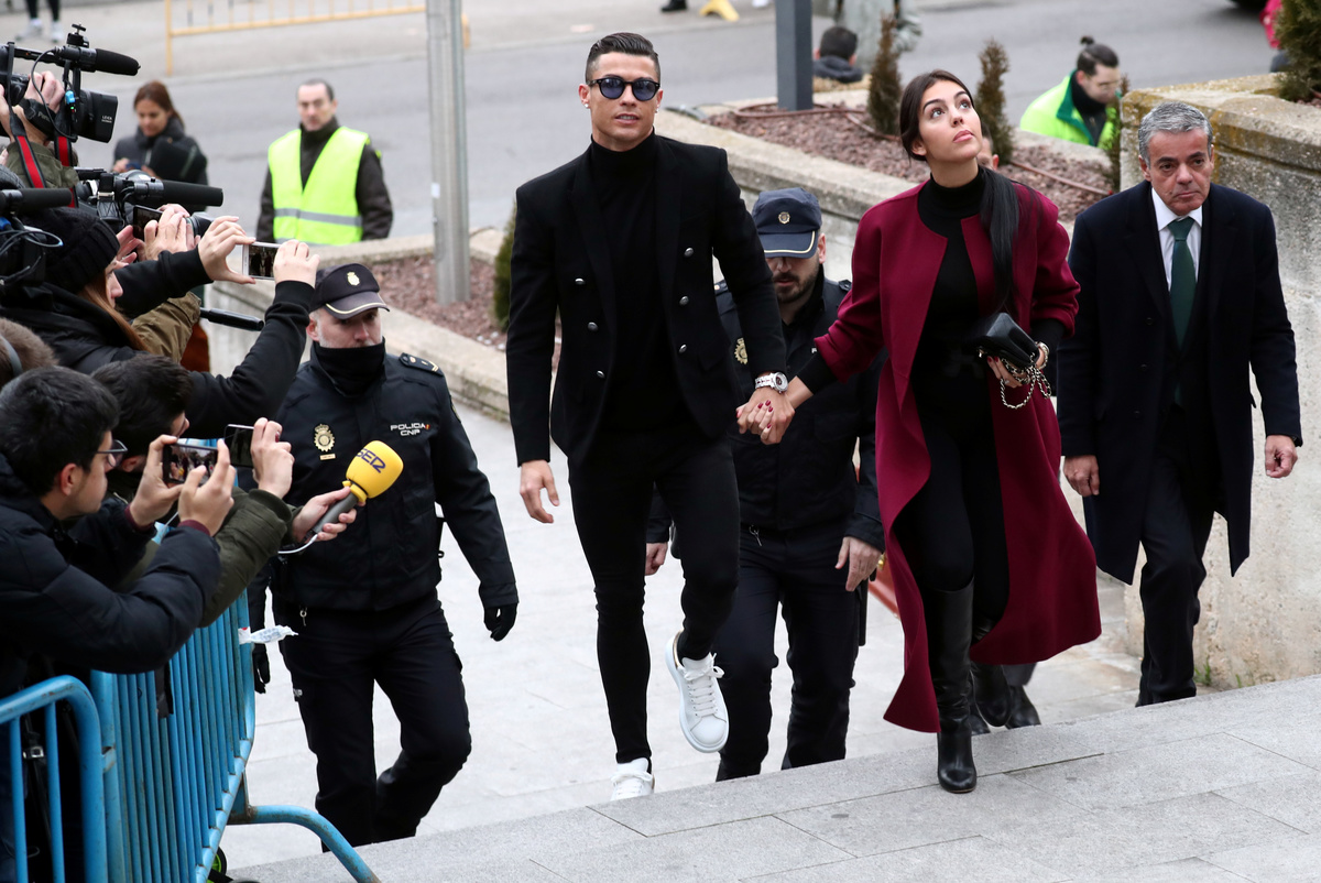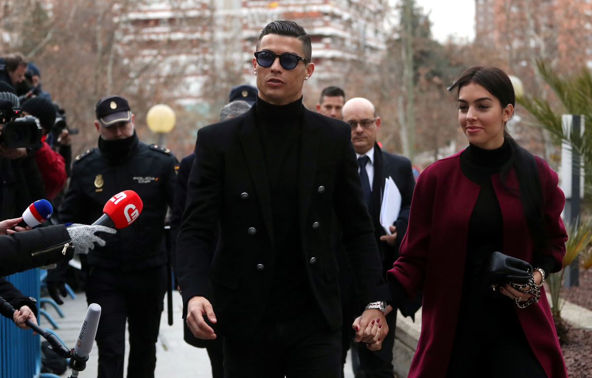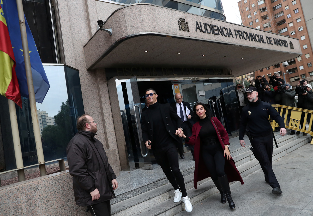 Ronaldo, holding hands with his Spanish fiancee Georgina Rodriguez, came out of the court room smiling, pausing to sign autographs before leaving in a black van.
