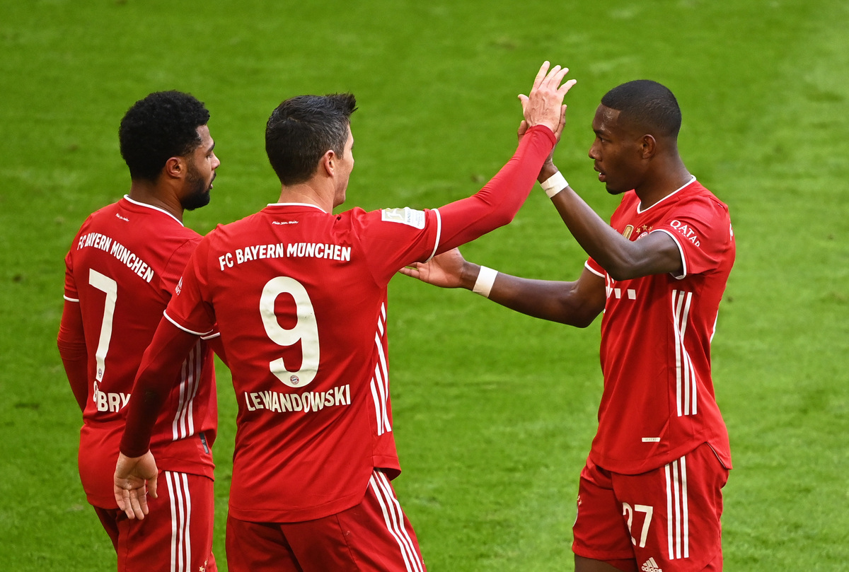 An early red card for left back Alphonso Davies spurred on Bayern as they scored four times in a 22-minute first-half spell despite being a man light, with Robert Lewandowski grabbing a hat-trick and Serge Gnabry netting the other goal.