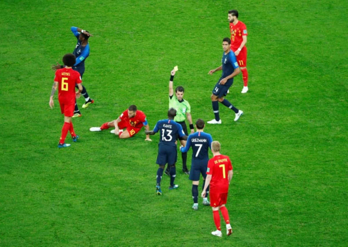 Soccer Football - World Cup - Semi Final - France v Belgium - Saint Petersburg Stadium, Saint Petersburg, Russia - July 10, 2018 Belgium's Kevin De Bruyne in action with France's Benjamin Pavard REUTERS/Dylan MartinezSoccer Football - World Cup - Semi Final - France v Belgium - Saint Petersburg Stadium, Saint Petersburg, Russia - July 10, 2018 Belgium's Marouane Fellaini in action with France's Paul Pogba REUTERS/Dylan MartinezSoccer Football - World Cup - Semi Final - France v Belgium - Saint Petersburg Stadium, Saint Petersburg, Russia - July 10, 2018 Belgium's Toby Alderweireld gestures after a challenge on France's Blaise Matuidi REUTERS/Michael DalderSoccer Football - World Cup - Semi Final - France v Belgium - Saint Petersburg Stadium, Saint Petersburg, Russia - July 10, 2018 France's Hugo Lloris in action REUTERS/Anton VaganovSoccer Football - World Cup - Semi Final - France v Belgium - Saint Petersburg Stadium, Saint Petersburg, Russia - July 10, 2018 France's Samuel Umtiti scores their first goal REUTERS/Dylan MartinezSoccer Football - World Cup - Semi Final - France v Belgium - Saint Petersburg Stadium, Saint Petersburg, Russia - July 10, 2018 France's Samuel Umtiti celebrates scoring their first goal REUTERS/Lee SmithSoccer Football - World Cup - Semi Final - France v Belgium - Saint Petersburg Stadium, Saint Petersburg, Russia - July 10, 2018 Belgium's Marouane Fellaini in action with France's Paul Pogba REUTERS/Max RossiSoccer Football - World Cup - Semi Final - France v Belgium - Saint Petersburg Stadium, Saint Petersburg, Russia - July 10, 2018 France's Raphael Varane in action with Belgium's Romelu Lukaku REUTERS/Dylan MartinezSoccer Football - World Cup - Semi Final - France v Belgium - Saint Petersburg Stadium, Saint Petersburg, Russia - July 10, 2018 Belgium's Eden Hazard in action with France's Paul Pogba REUTERS/Toru HanaiSoccer Football - World Cup - Semi Final - France v Belgium - Saint Petersburg Stadium, Saint Petersburg, Russia - July 10, 2018 Belgium's Eden Hazard in action with France's Paul Pogba, Benjamin Pavard and Antoine Griezmann REUTERS/Sergio PerezSoccer Football - World Cup - Semi Final - France v Belgium - Saint Petersburg Stadium, Saint Petersburg, Russia - July 10, 2018 France's Samuel Umtiti miskicks a clearance and Belgium's Romelu Lukaku could not control the ball REUTERS/Lee SmithSoccer Football - World Cup - Semi Final - France v Belgium - Saint Petersburg Stadium, Saint Petersburg, Russia - July 10, 2018 Belgium's Romelu Lukaku, Marouane Fellaini, Nacer Chadli and Axel Witsel jump in the wall to defend a free kick from France's Antoine Griezmann REUTERS/Michael DalderSoccer Football - World Cup - Semi Final - France v Belgium - Saint Petersburg Stadium, Saint Petersburg, Russia - July 10, 2018 Belgium's Thibaut Courtois makes a save from France's Benjamin Pavard REUTERS/Anton VaganovSoccer Football - World Cup - Semi Final - France v Belgium - Saint Petersburg Stadium, Saint Petersburg, Russia - July 10, 2018 France's Kylian Mbappe in action with Belgium's Mousa Dembele REUTERS/Henry RomeroSoccer Football - World Cup - Semi Final - France v Belgium - Saint Petersburg Stadium, Saint Petersburg, Russia - July 10, 2018 France's Kylian Mbappe in action with Belgium's Nacer Chadli REUTERS/Sergio PerezSoccer Football - World Cup - Semi Final - France v Belgium - Saint Petersburg Stadium, Saint Petersburg, Russia - July 10, 2018 France's Lucas Hernandez in action with Belgium's Kevin De Bruyne REUTERS/Lee SmithSoccer Football - World Cup - Semi Final - France v Belgium - Saint Petersburg Stadium, Saint Petersburg, Russia - July 10, 2018 France's Benjamin Pavard has a shot saved by Belgium's Thibaut Courtois REUTERS/Max Rossi