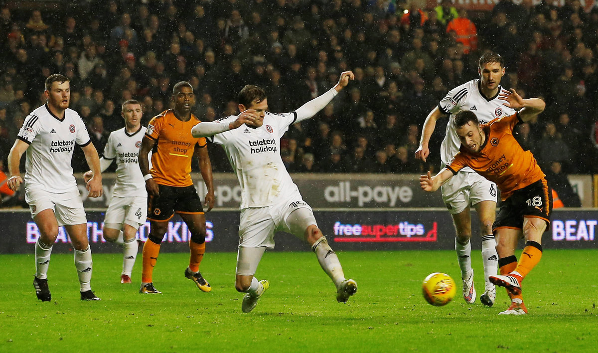 Soccer Football - Championship - Wolverhampton Wanderers vs Sheffield United - Molineux Stadium, Wolverhampton, Britain - Febraury 3, 2018 Wolves' Dioga Jota scores their second goal Action Images/Craig Brough