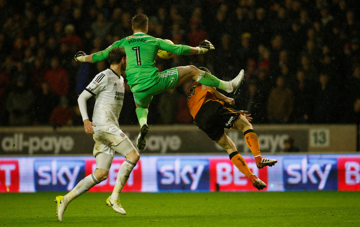 Soccer Football - Championship - Wolverhampton Wanderers vs Sheffield United - Molineux Stadium, Wolverhampton, Britain - Febraury 3, 2018 Sheffield United's Simon Moore fouls Wolves' Dioga Jota and is subsequently sent off via a straight red card Action Images/Craig Brough Soccer Football - Championship - Wolverhampton Wanderers vs Sheffield United - Molineux Stadium, Wolverhampton, Britain - Febraury 3, 2018 Wolves' Dioga Jota scores their second goal Action Images/Craig Brough Soccer Football - Championship - Wolverhampton Wanderers vs Sheffield United - Molineux Stadium, Wolverhampton, Britain - Febraury 3, 2018 Wolves' Dioga Jota celebrates scoring their second goal Action Images/Craig Brough Soccer Football - Championship - Wolverhampton Wanderers vs Sheffield United - Molineux Stadium, Wolverhampton, Britain - Febraury 3, 2018 Wolves' Dioga Jota celebrates with team mates after scoring their second goal Action Images/Craig Brough