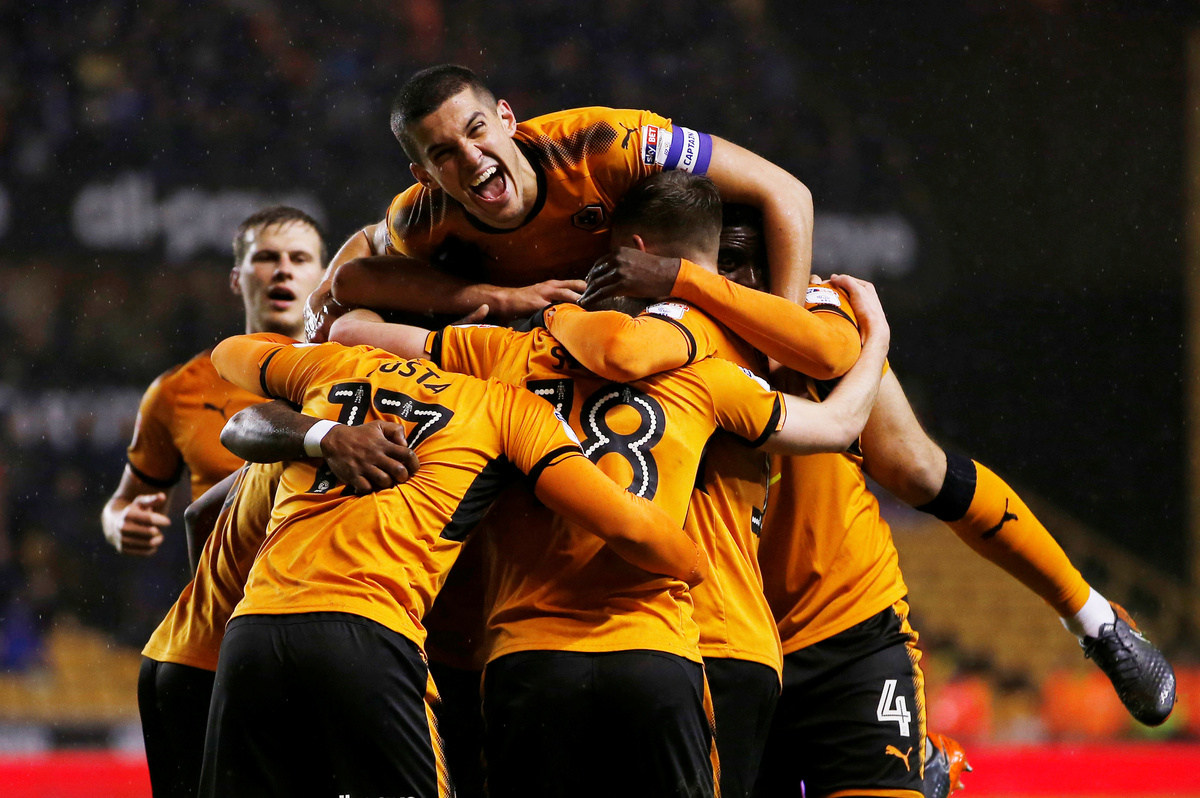 All three goals came from the club's large Portuguese contingent: Ruben Neves and Diogo Jota scored in the first half and Ivan Cavaleiro added the third.