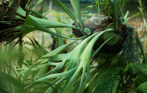 Staghorn ferns belong to a group of tree-dwelling plants known as epiphytes. Tree canopies are a challenging environment for plants to grow. Without access to soil, epiphytes are regularly exposed to severe water and nutrient stress.