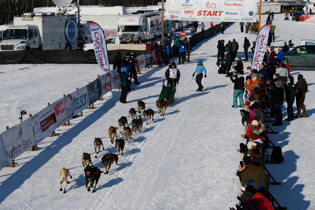 Access to the starting area - a secluded spot at the edge of the frozen Deshka River in Willow, Alaska, about 75 miles north of Anchorage – was generally restricted to competitors, essential race personnel and media.