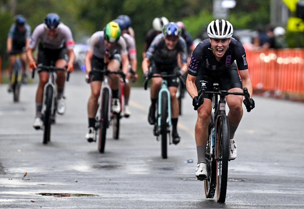 Crossing the line six seconds behind the defending champion was US gravel winner Lauren Stephens (Aegis Cycling Foundation) for second, and Stella Hobbs (MAAP-Wahoo) was third, a further six seconds back.