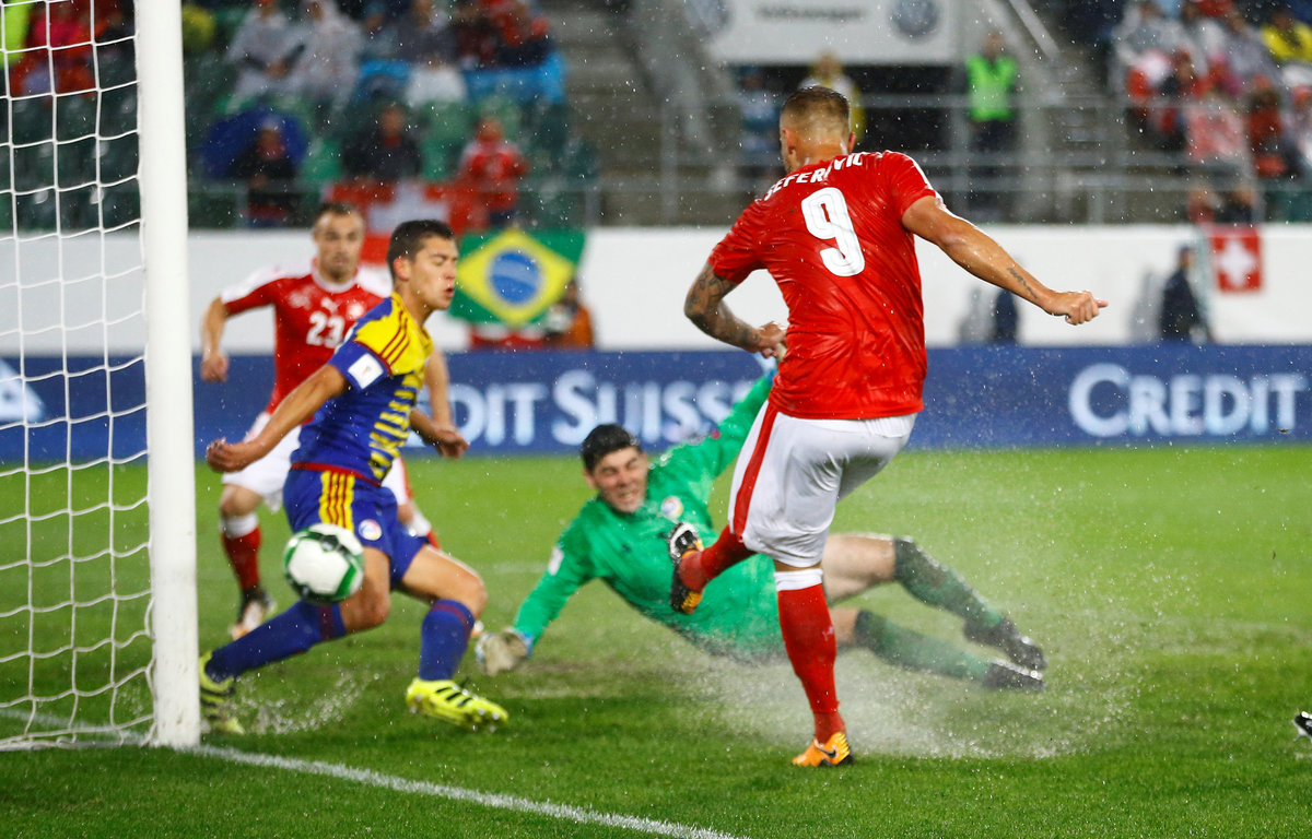 The second goal by Seferovic in the 62nd summed up the evening as Andorra's attempts to clear the ball were hampered by the water on the pitch.