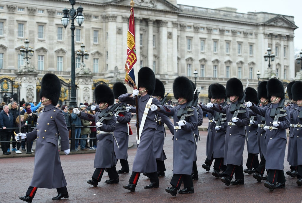 The soldier, a Coldstream Guard – a division with a ceremonial role of providing protection for royal palaces – is filmed marching before a child appears to step out in front of him.