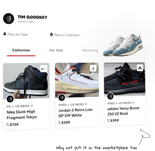To bring an even more personal element to the transaction, COLLECT will also have a unique identity verification process to prevent scams and help users make more authentic connections. It sounds a bit like a dating app, but the KYC (“Know Your Customer”) technology is used by banks and financial institutions for safety, and it’ll help create a more fair environment. StockX added two-factor authentication in 2020 after a data breach exposed 7 million records from its users, so the extra SoleSavy security is pretty necessary for this type of landscape.