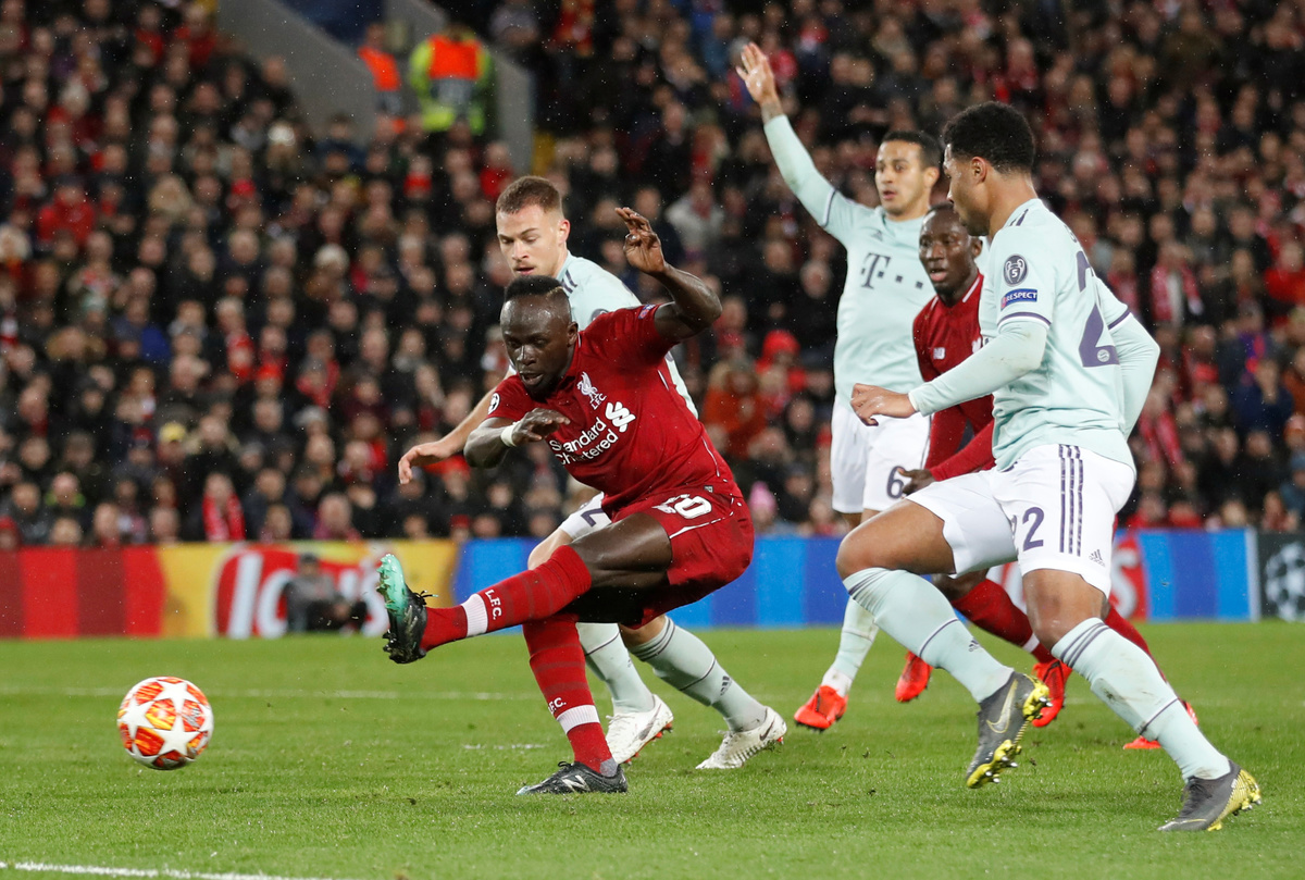 Soccer Football - Champions League - Round of 16 First Leg - Liverpool v Bayern Munich - Anfield, Liverpool, Britain - February 19, 2019 Liverpool's Sadio Mane shoots at goal Action Images via Reuters/Carl Recine