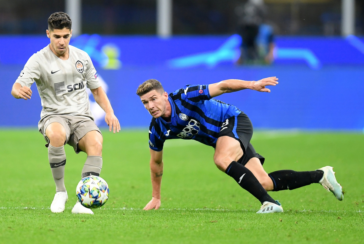 Soccer Football - Group C - Atalanta v Shakhtar Donetsk - San Siro, Milan, Italy - October 1, 2019 Atalanta's Robin Gosens in action REUTERS/Daniele MascoloSoccer Football - Group C - Atalanta v Shakhtar Donetsk - San Siro, Milan, Italy - October 1, 2019 Atalanta's Luis Muriel in action with Shakhtar Donetsk's Serhiy Bolbat REUTERS/Daniele MascoloSoccer Football - Group C - Atalanta v Shakhtar Donetsk - San Siro, Milan, Italy - October 1, 2019 Shakhtar Donetsk's Manor Solomon celebrates scoring their second goal with teammates REUTERS/Daniele MascoloSoccer Football - Group C - Atalanta v Shakhtar Donetsk - San Siro, Milan, Italy - October 1, 2019 Shakhtar Donetsk's Manor Solomon celebrates scoring their second goal REUTERS/Daniele MascoloSoccer Football - Group C - Atalanta v Shakhtar Donetsk - San Siro, Milan, Italy - October 1, 2019 Shakhtar Donetsk's Andriy Pyatov and Dodo celebrate after the match REUTERS/Daniele MascoloSoccer Football - Group C - Atalanta v Shakhtar Donetsk - San Siro, Milan, Italy - October 1, 2019 Shakhtar Donetsk's Dodo celebrates their second goal REUTERS/Daniele Mascolo