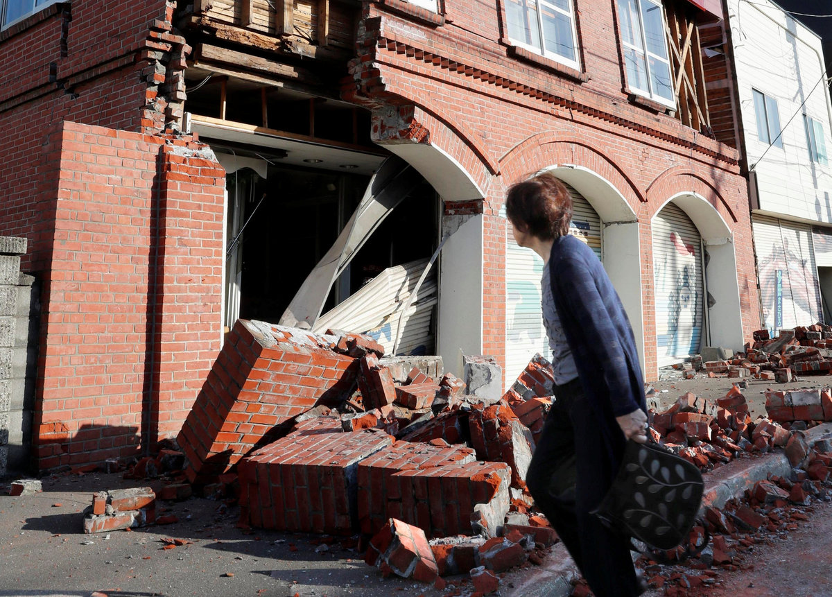 "It came in four big jerks - boom! boom! boom! boom!" one unidentified woman told NHK. "Before we knew it our house was bent and we couldn't open the door."
