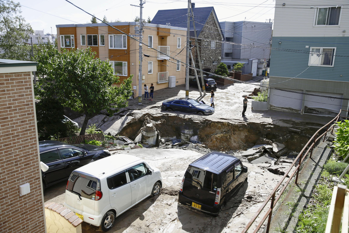 Television footage from Sapporo showed crumbled roads and mud covering a main street. Police directed traffic because signal lights were out while drink-vending machines, ubiquitous in Japan, and most ATMs were not working.