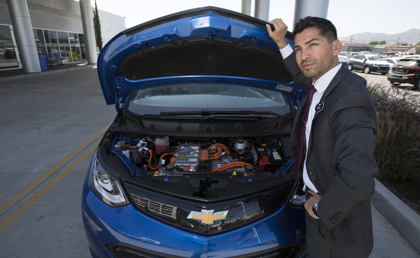 No surprise, Gutierrez sells electric cars. A sales manager at Community Chevrolet in Burbank, Calif., he pushes plenty of gas-powered cars too. Community asserts it moves more Corvettes than anyone in the Southland.
